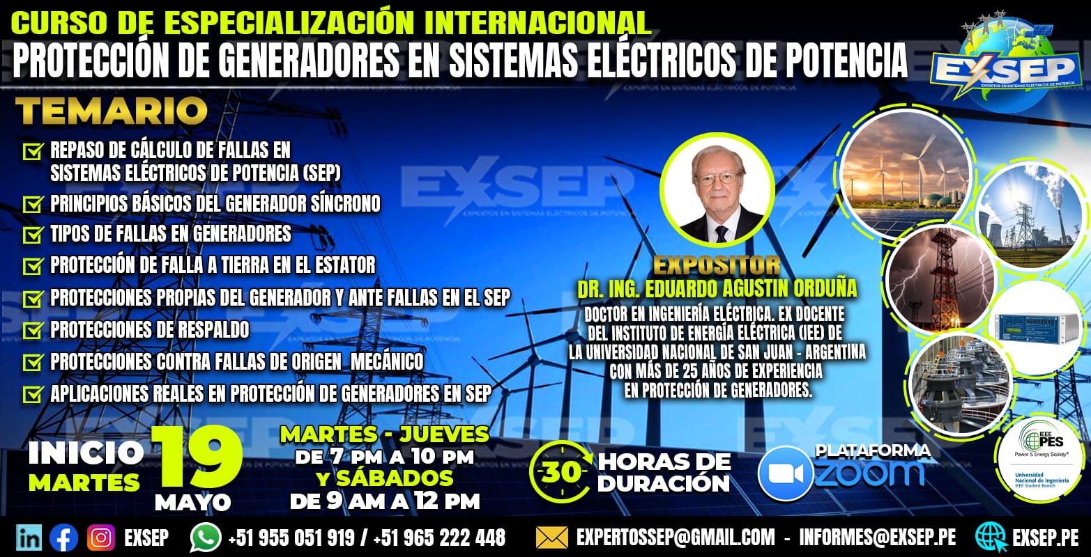 CURSO INTERNACIONAL "PROTECCIÓN DE GENERADORES EN SISTEMAS ELÉCTRICOS DE POTENCIA"